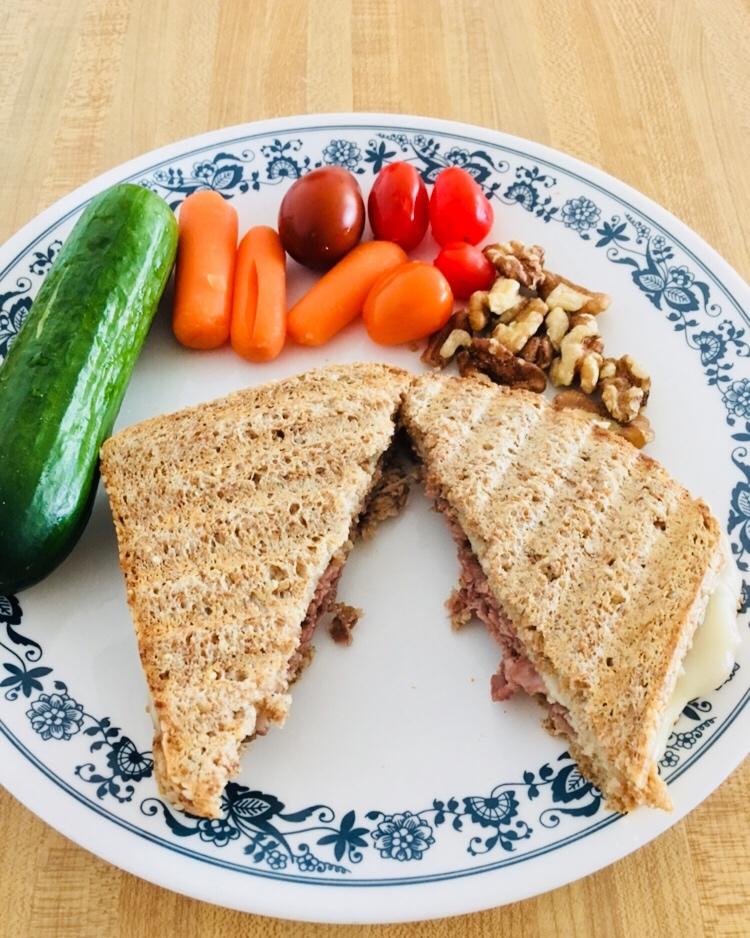 Provolone在家放了好久,终于买了roast beef,压个panini。考前一天没啥食欲,先预演一下明天的午餐吧...