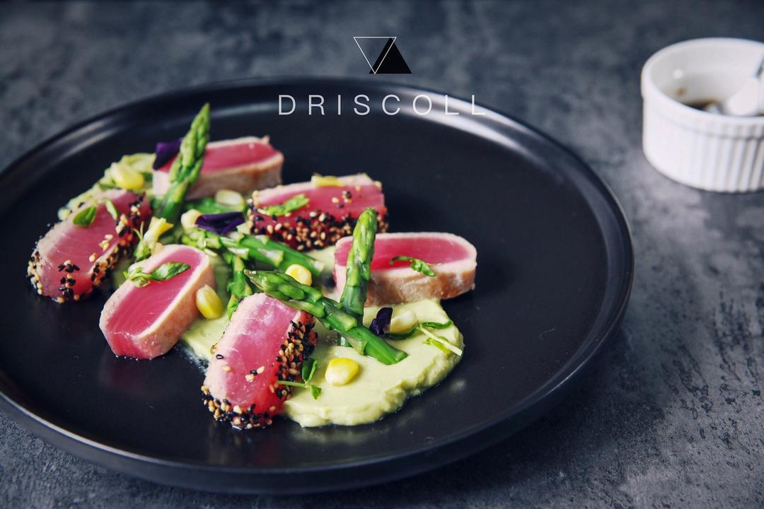 吞拿魚牛油果蘆筍玉米沙拉。吃一兩次罐頭吞拿就要再買一次吞拿魚刺身,提醒味覺吞拿魚真正的味道。混合黑芝麻、白芝麻、海鹽,取...