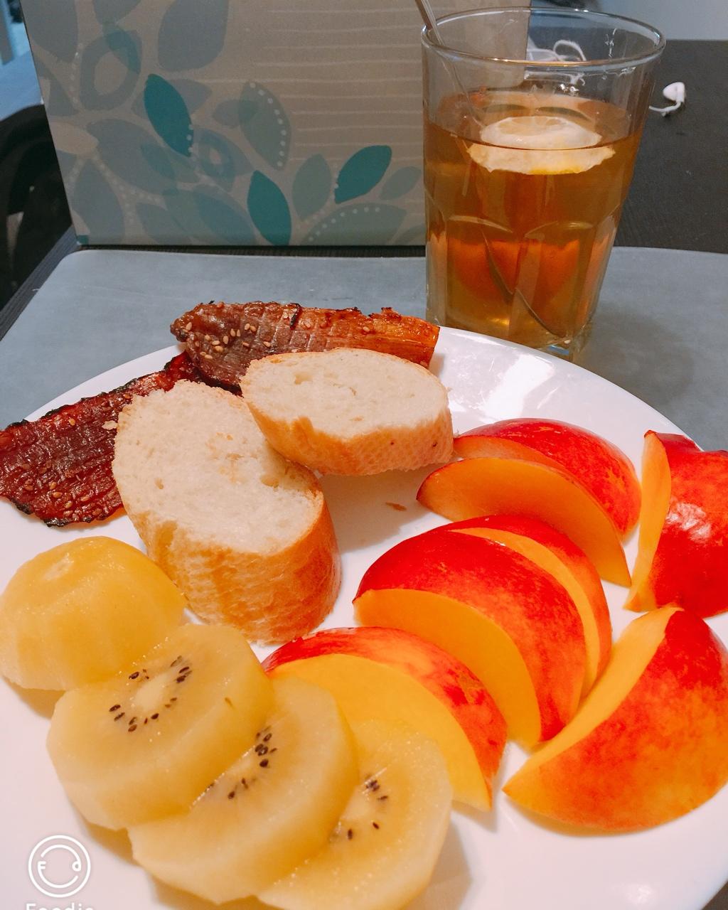 法棍+猪肉脯+黄金果+油桃+柠檬红茶