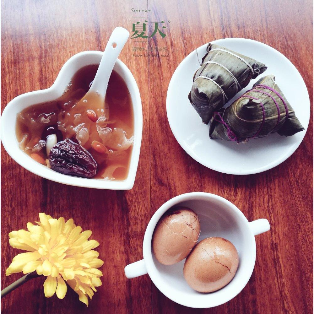 粽子、红枣枸杞薏米银耳汤、卤蛋