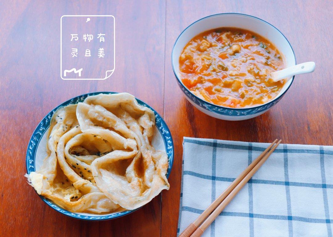 手抓饼 、西红柿🍅疙瘩汤