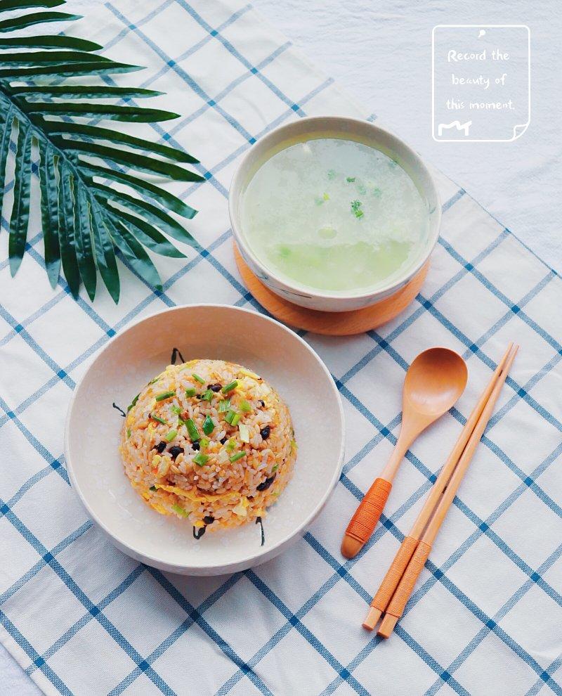 豆豉肉沫蛋炒饭、冬瓜汤
