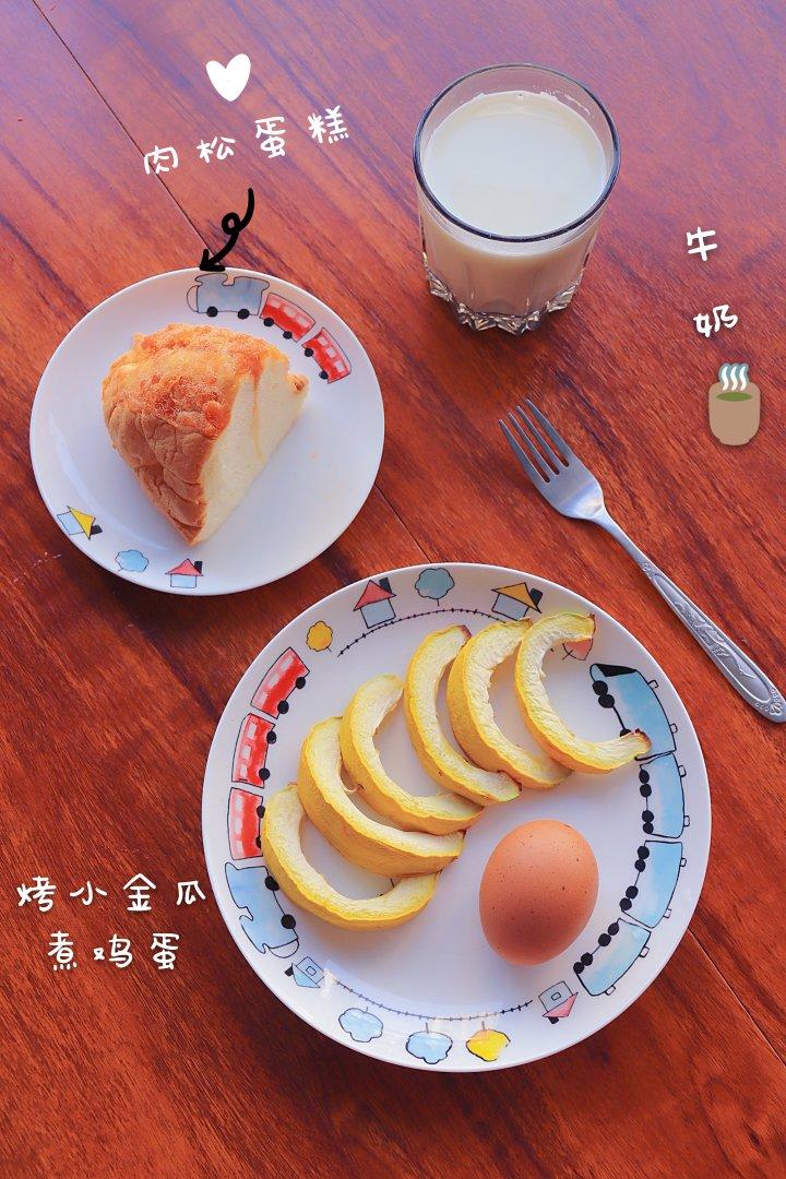 肉松蛋糕、烤小金瓜~鸡蛋、牛奶