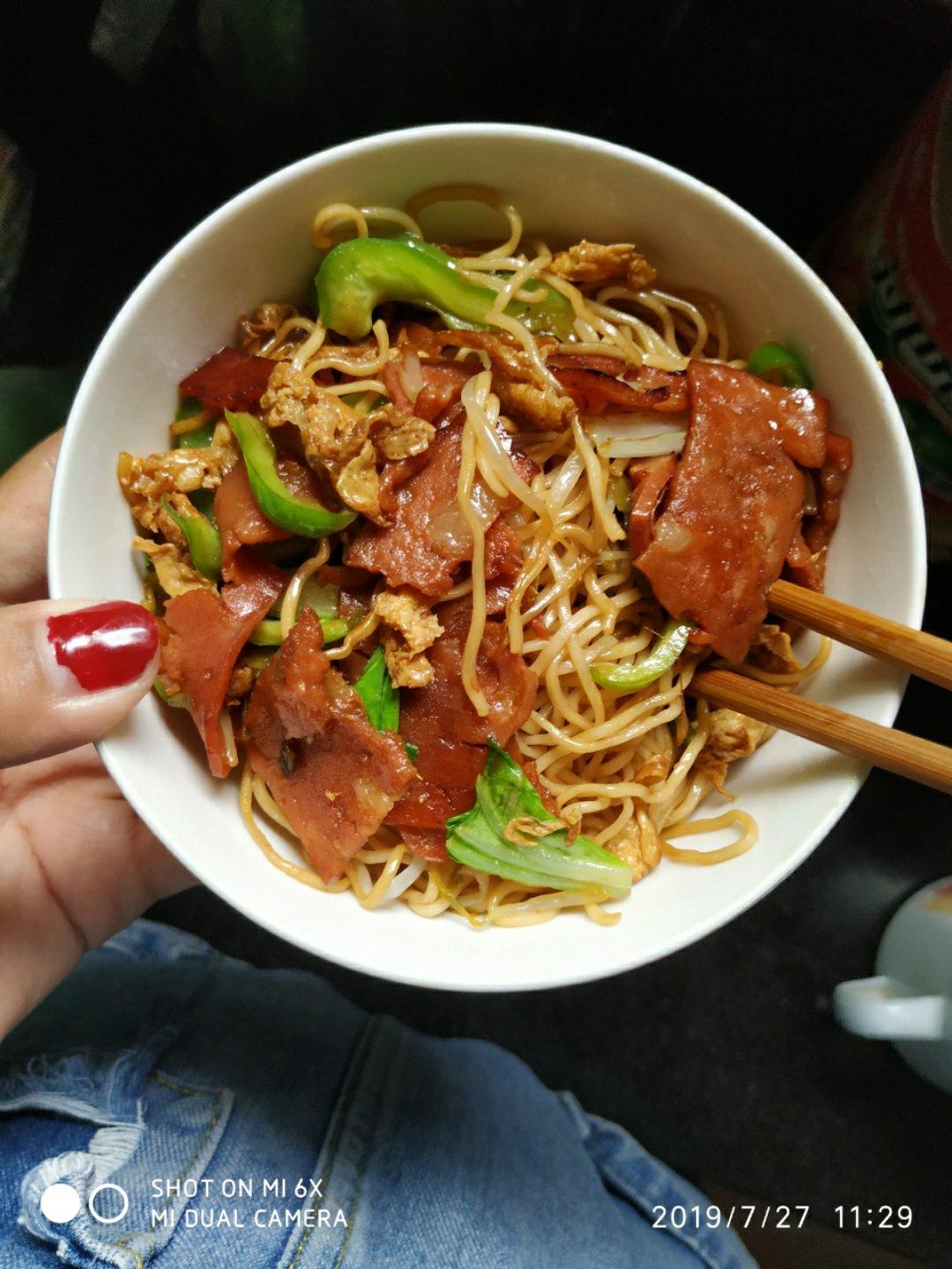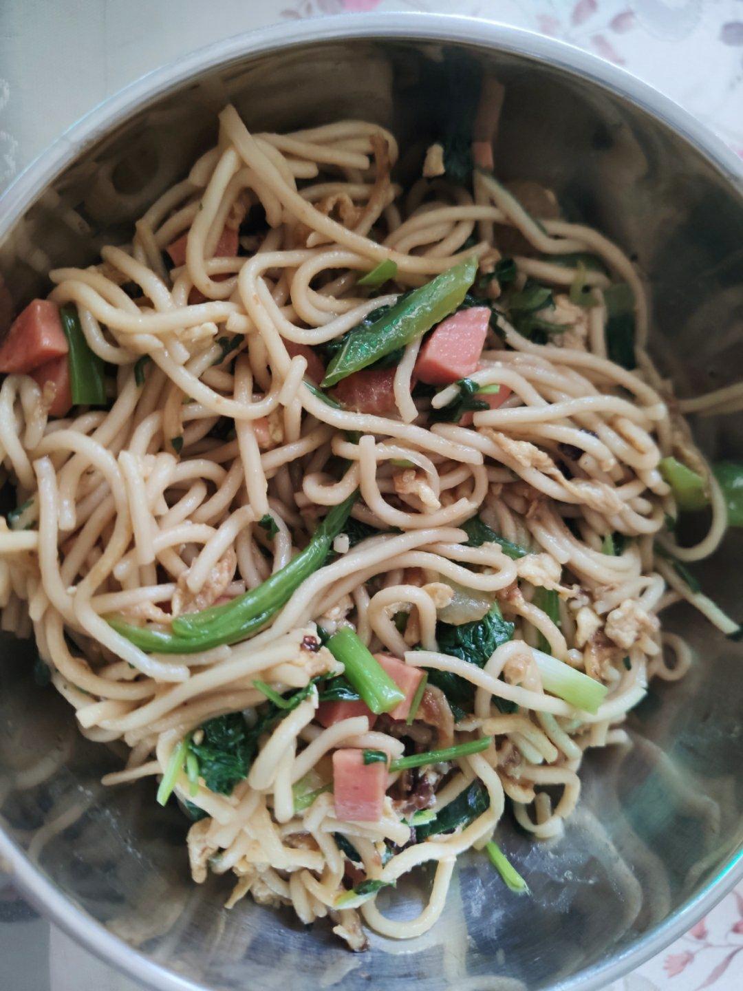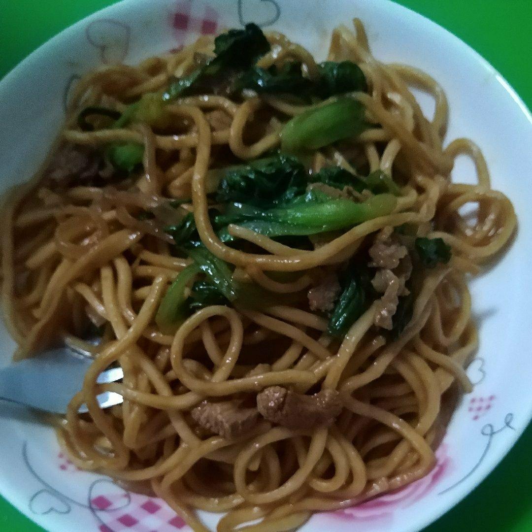 晚餐,青菜鸡蛋炒面+西蓝花香菇丸子汤,简单又方便,小锅炒的,所以面炒的有点缺陷哈😂😂