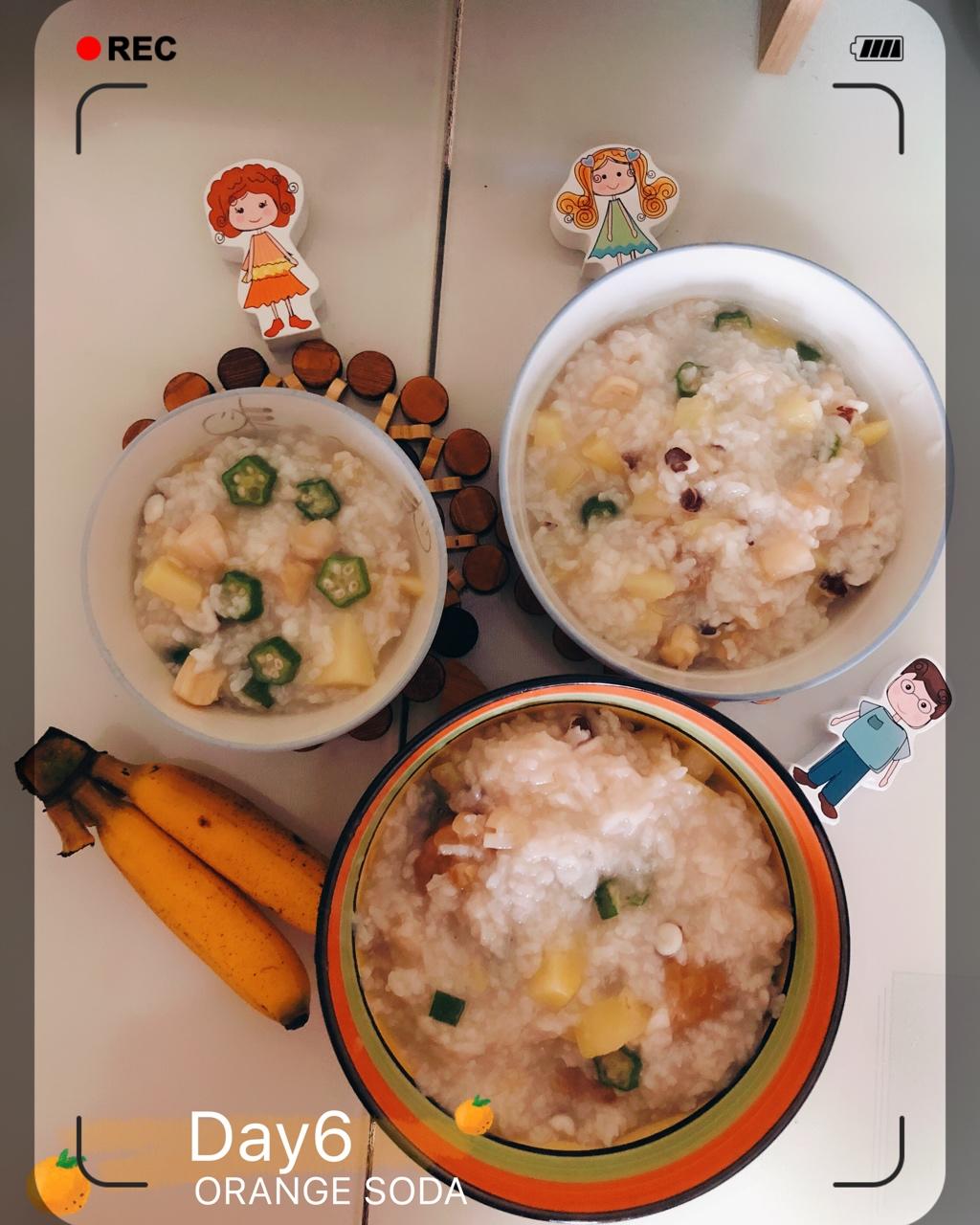 #干贝芡实土豆玉米秋葵虾粥#