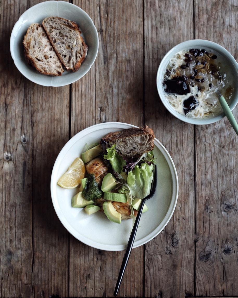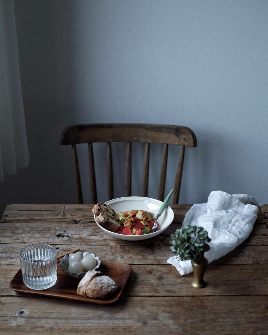 牛油果西柚大虾沙拉,杂豆夏巴塔