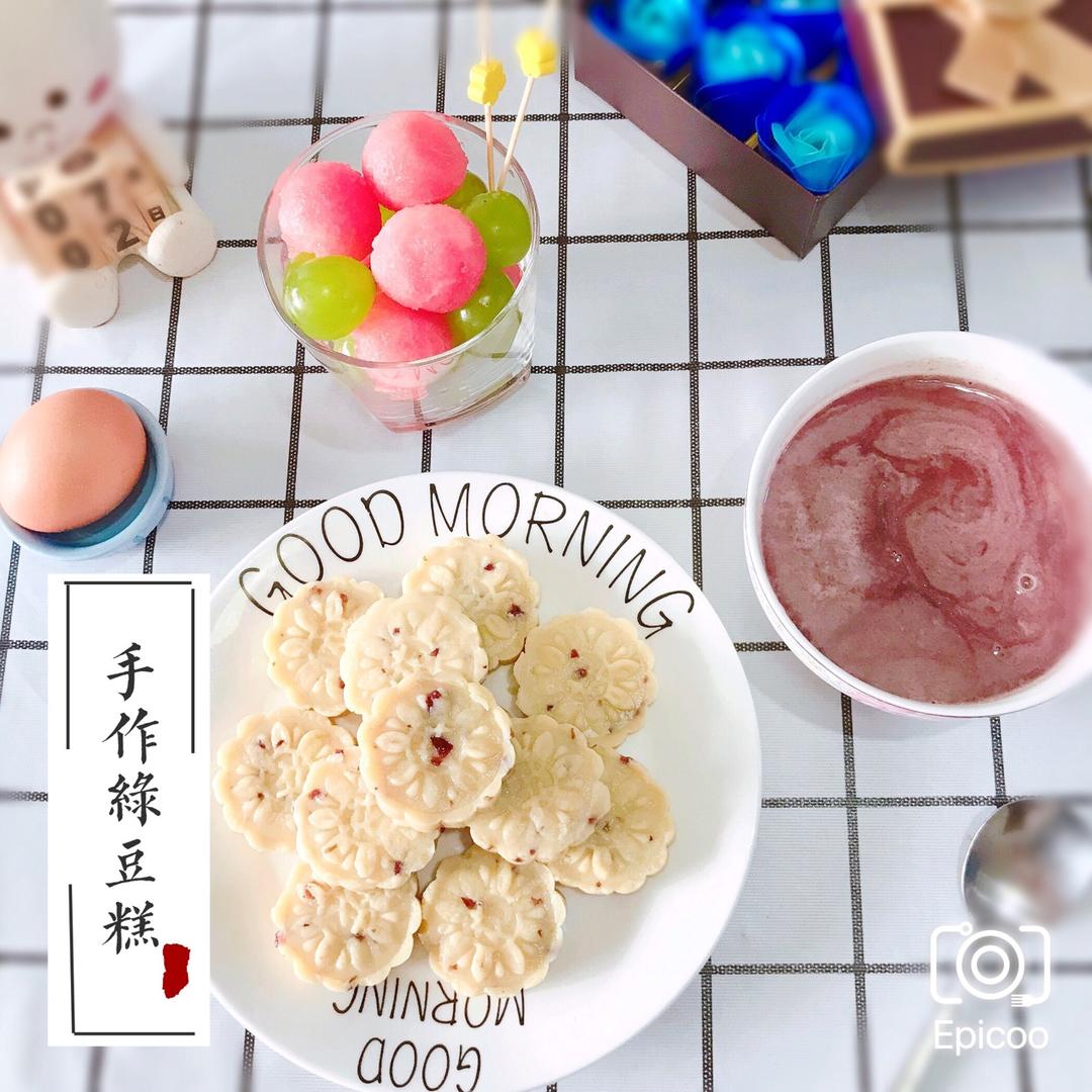 早餐马拉松Day8:蔓越莓绿豆糕+奶香黑米糊+鸡蛋+西瓜+青提。