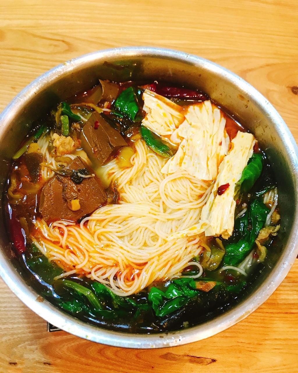 笋子鸡汤米粉……但是因为放了鸭血,就默默加了辣椒………