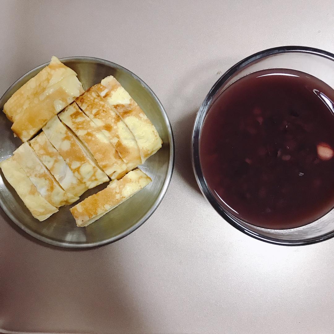 早餐~厚蛋烧和紫薯黑米杂粮粥,都是第一次做的,下次得再接再厉