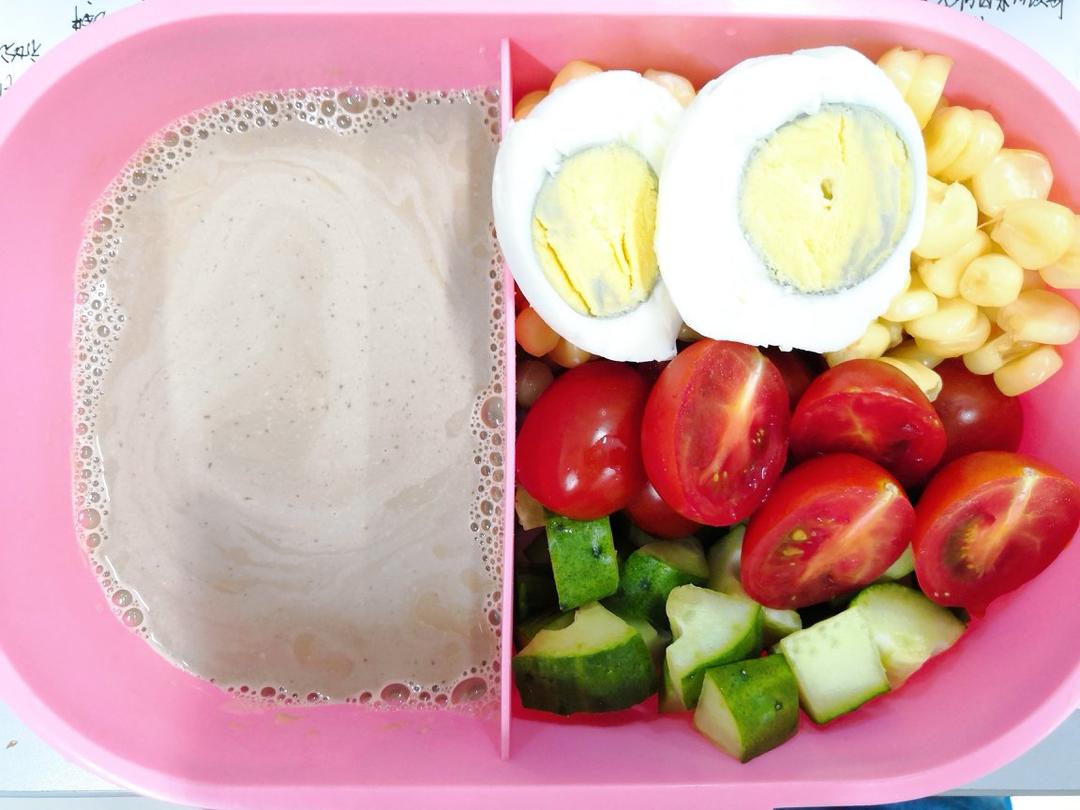 D4:牛奶黑咖啡+鸡蛋+半根玉米+半根黄瓜+圣女果