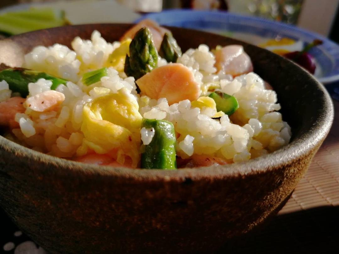 三文鱼芦笋炒饭,有...