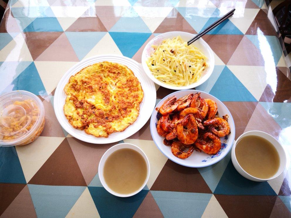 就三个菜 ,还有两个是朋友家免费送货,有现成的吃 太幸福了