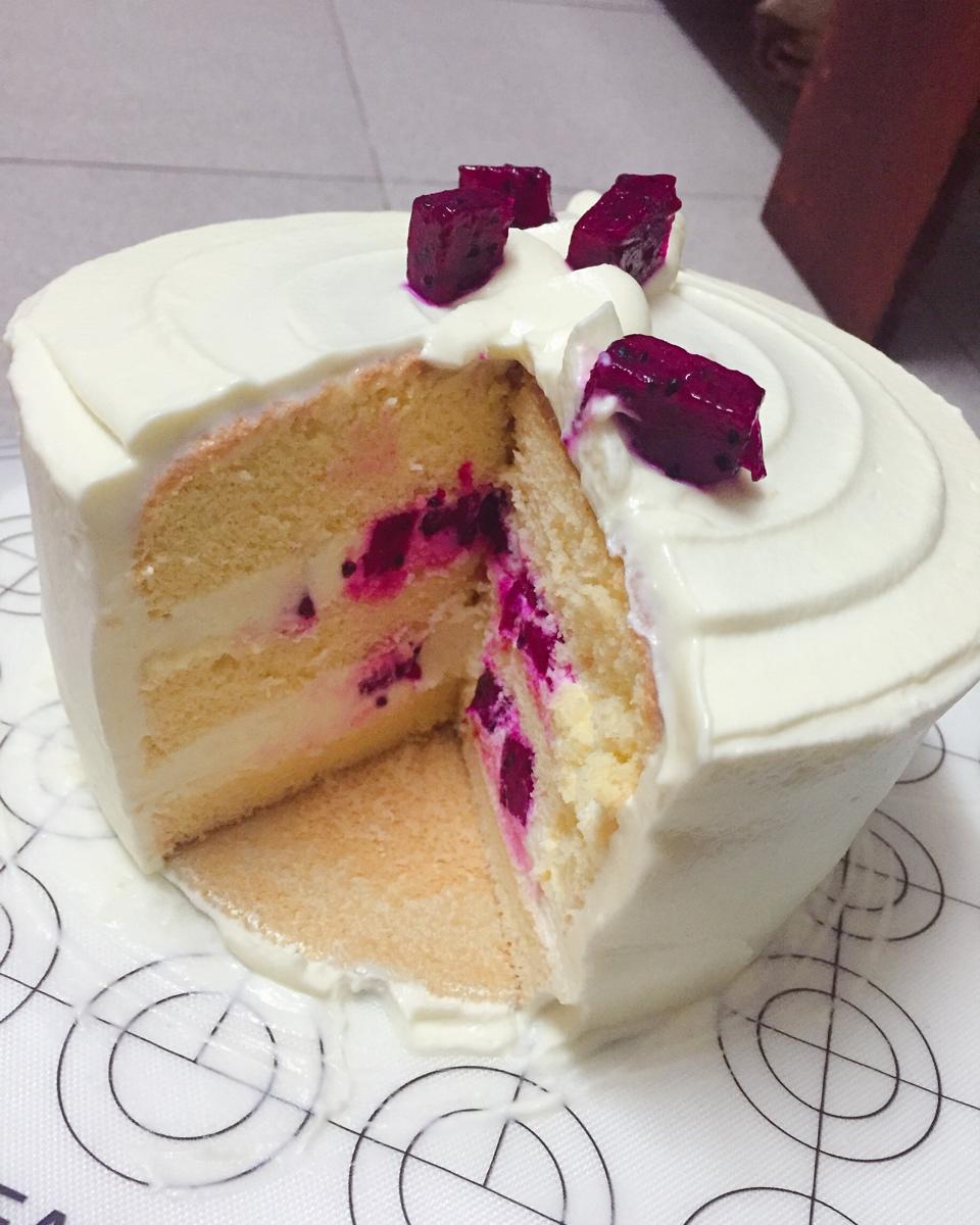 好久没吃奶油蛋糕,用了6寸海绵蛋糕底,450的奶油