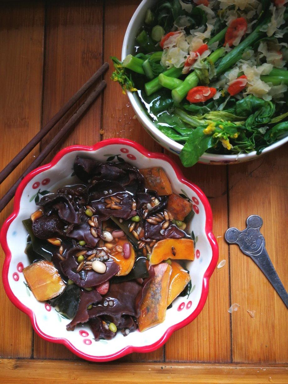 海味瓜皮炖杂粮+雪花菜心