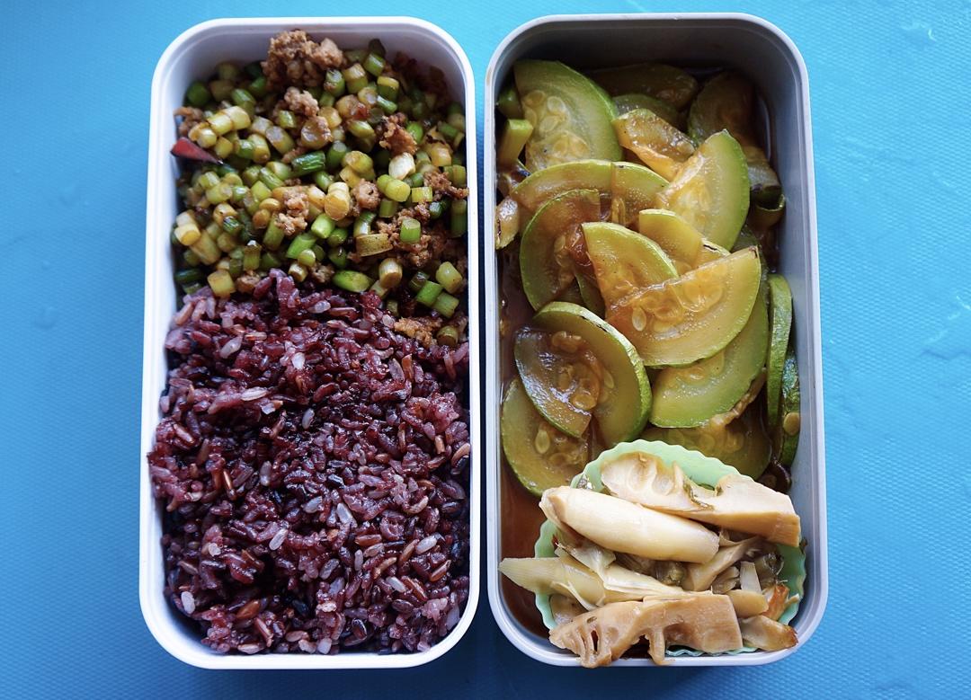 炒花菜和三色糙米饭 ...