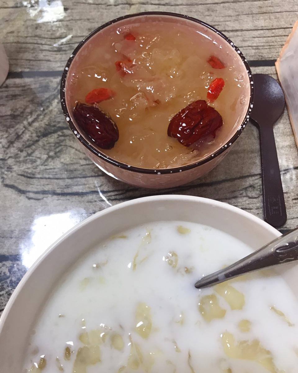 牛奶银耳汤+枸杞红枣银耳汤 冰糖清炖银耳可以万能配~