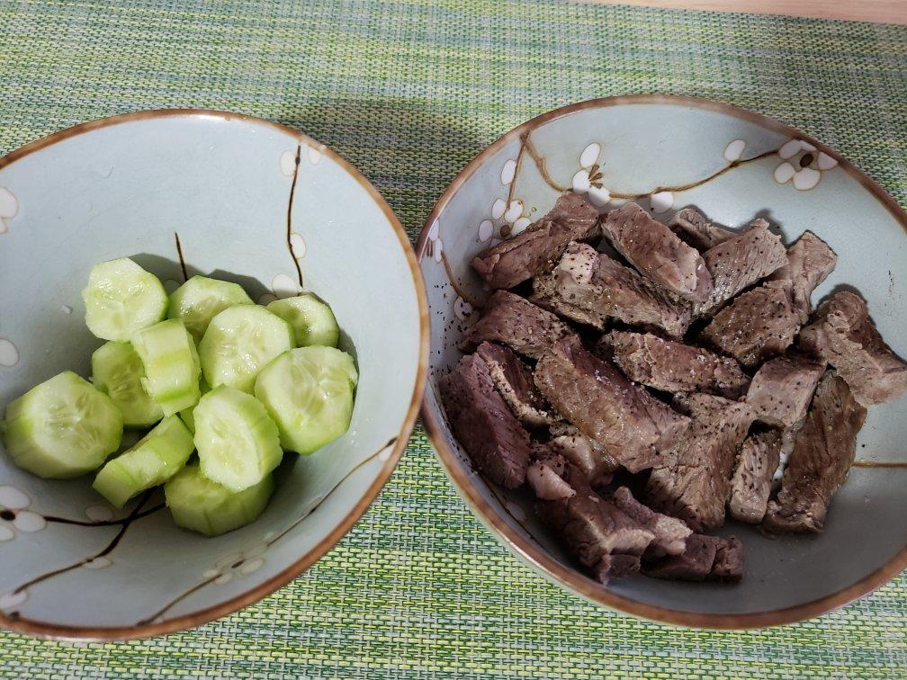 红烧牛蹄和鸡脚 苦瓜炒蛋 炒芹菜 酸辣粉 桃子