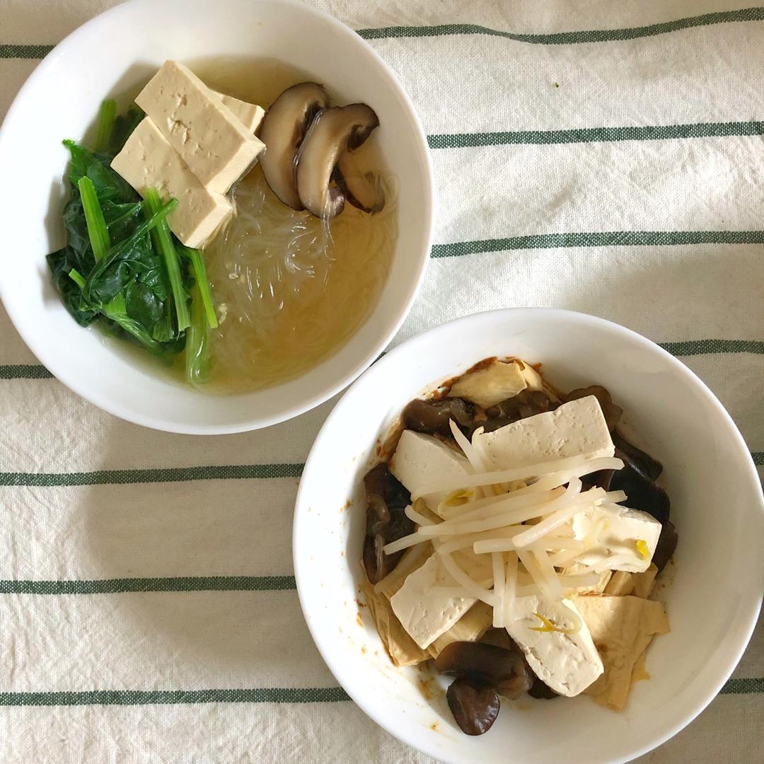 菠菜香菇粉丝汤+凉拌豆芽木耳腐竹