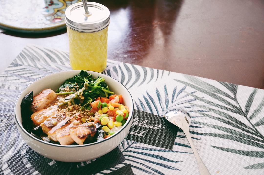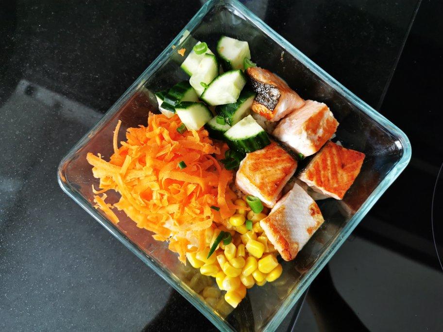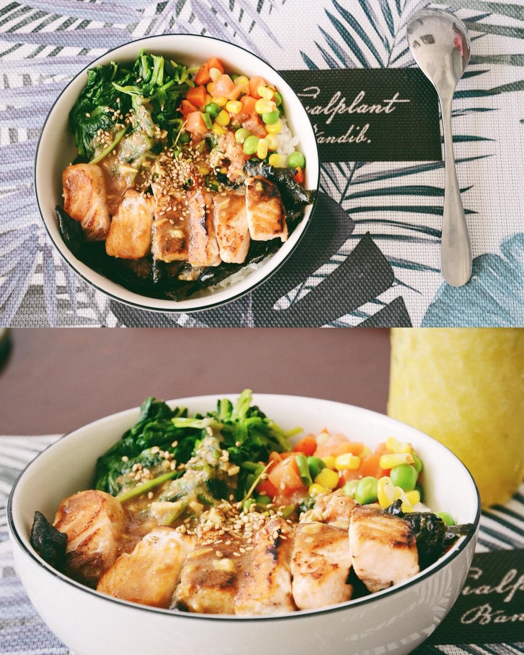酸又香的酱汁与各种蔬菜还有肥美三文鱼混合在一起