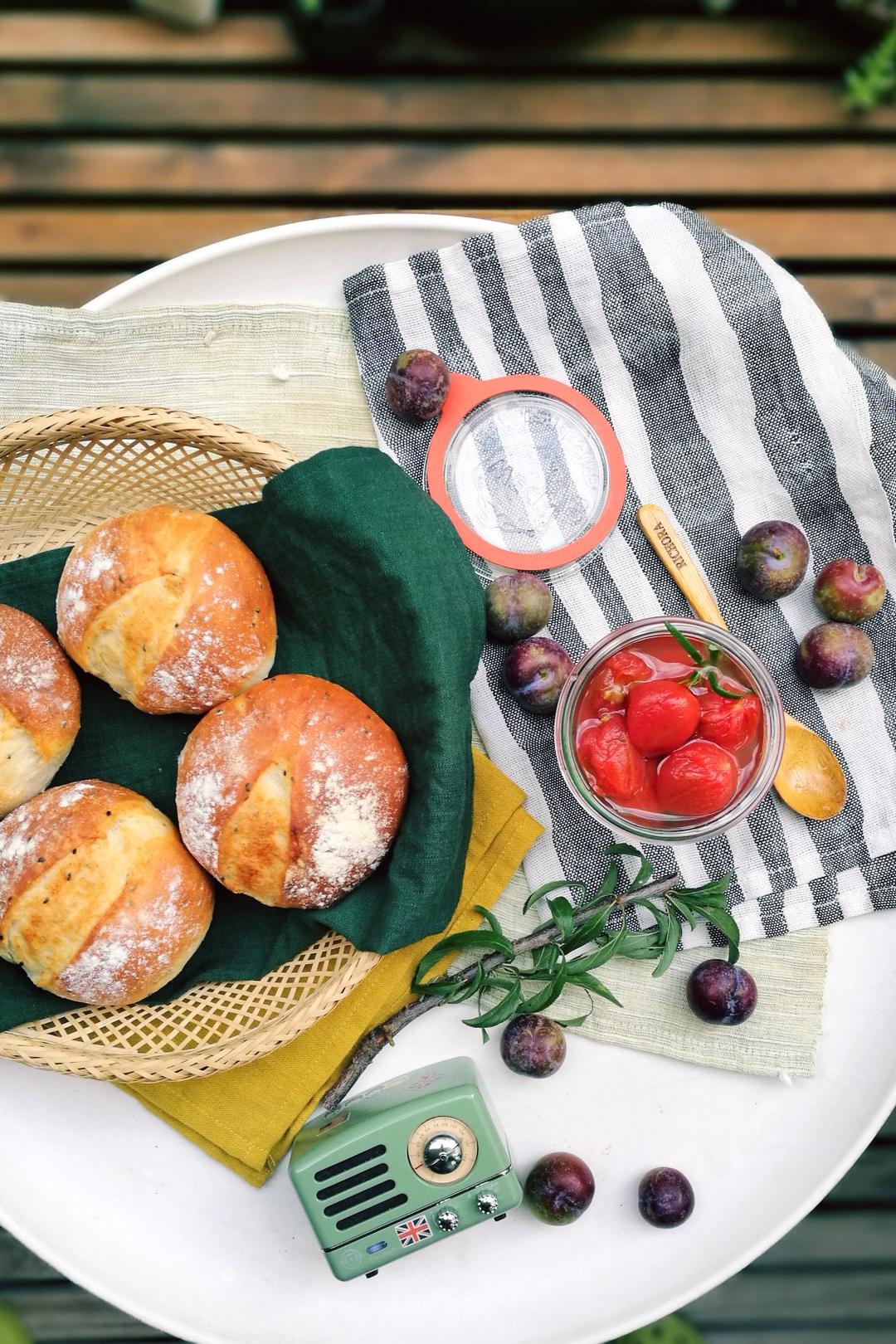 避哥负责陪二胖妹午睡的时候,我就有大把时间做好吃的。烤了六个法式芝麻球,迷迭香糖渍小番茄已经在玻璃罐...
