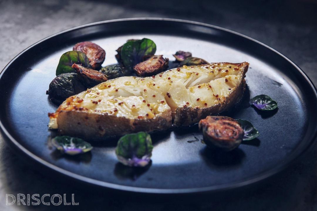 烤芥末生薑比目魚伴孢子甘藍。之前做@