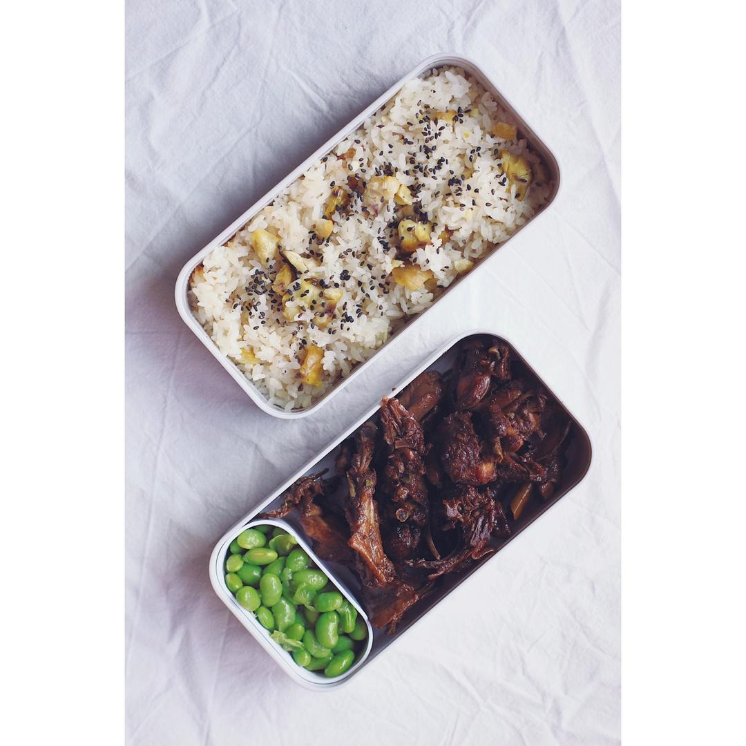 板栗饭+酸醋鸡+清蒸毛豆