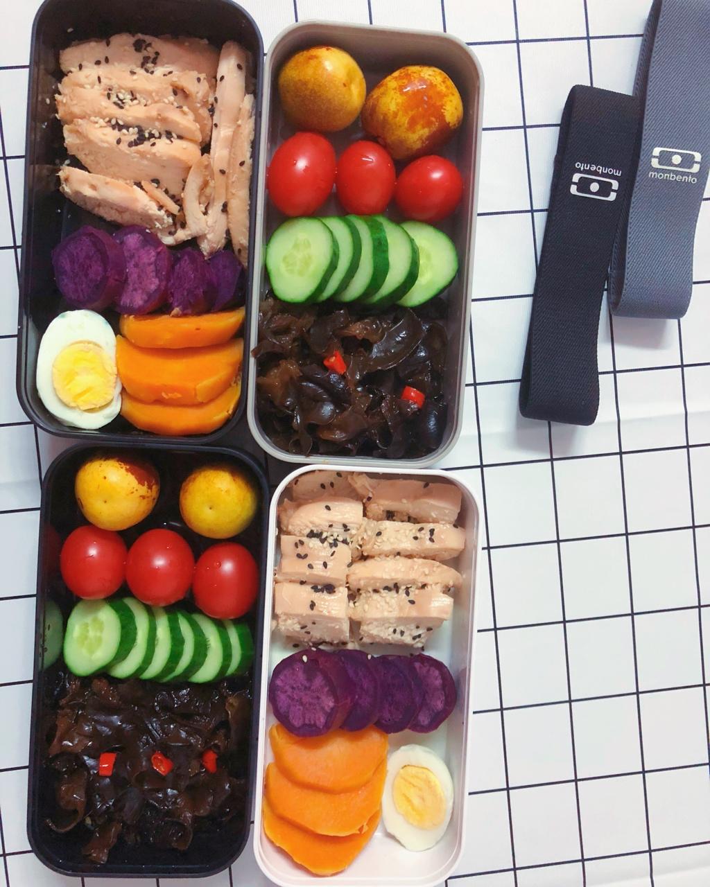 9月的第一餐便当,早上起来给自己和妹妹准备的午餐~烤鸡胸肉,蒸红薯🍠和紫薯,鸡蛋,凉拌黑木耳,黄瓜🥒,圣女果和枣子😋😊 ...