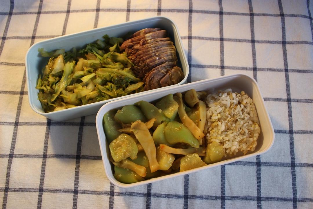 牛肉+卷心菜+榨菜丝瓜+杂粮饭