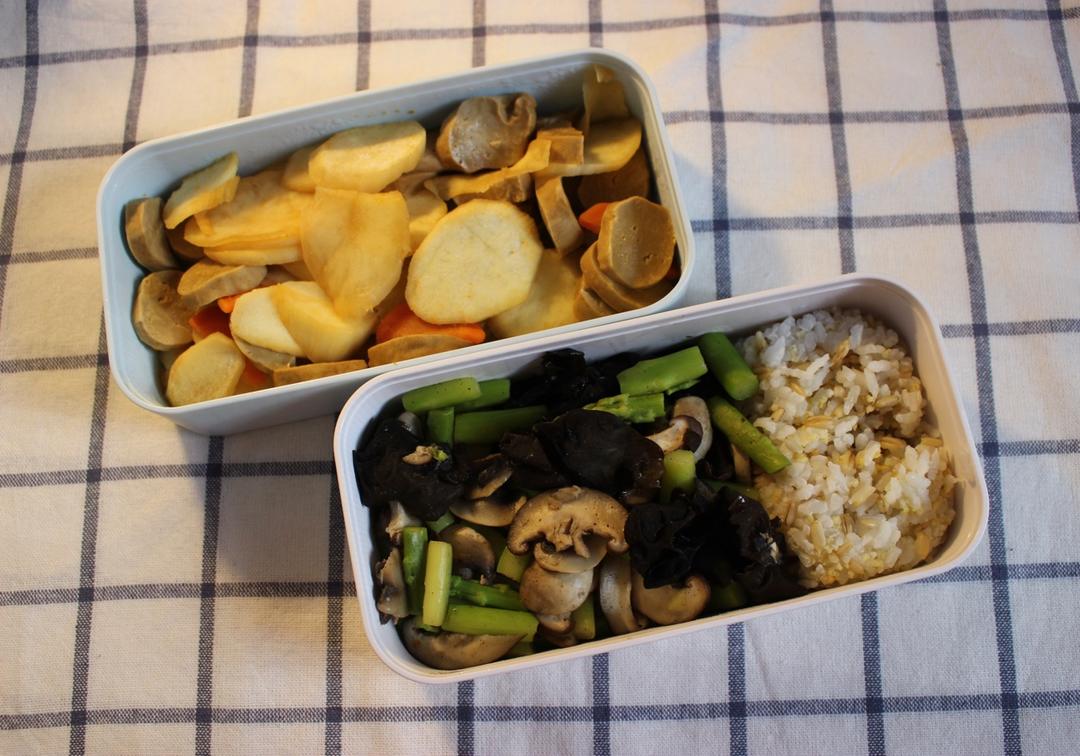 茭白素鸡+芦笋木耳香菇+杂粮饭