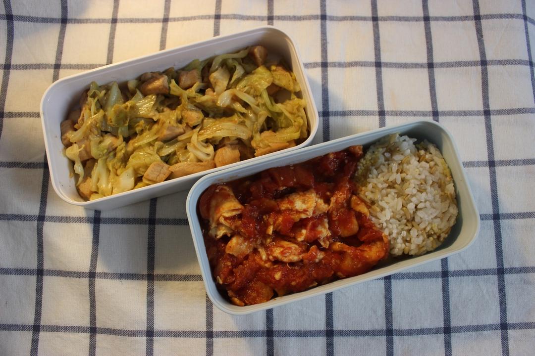 鸡肉卷心菜+番茄炒蛋+杂粮饭