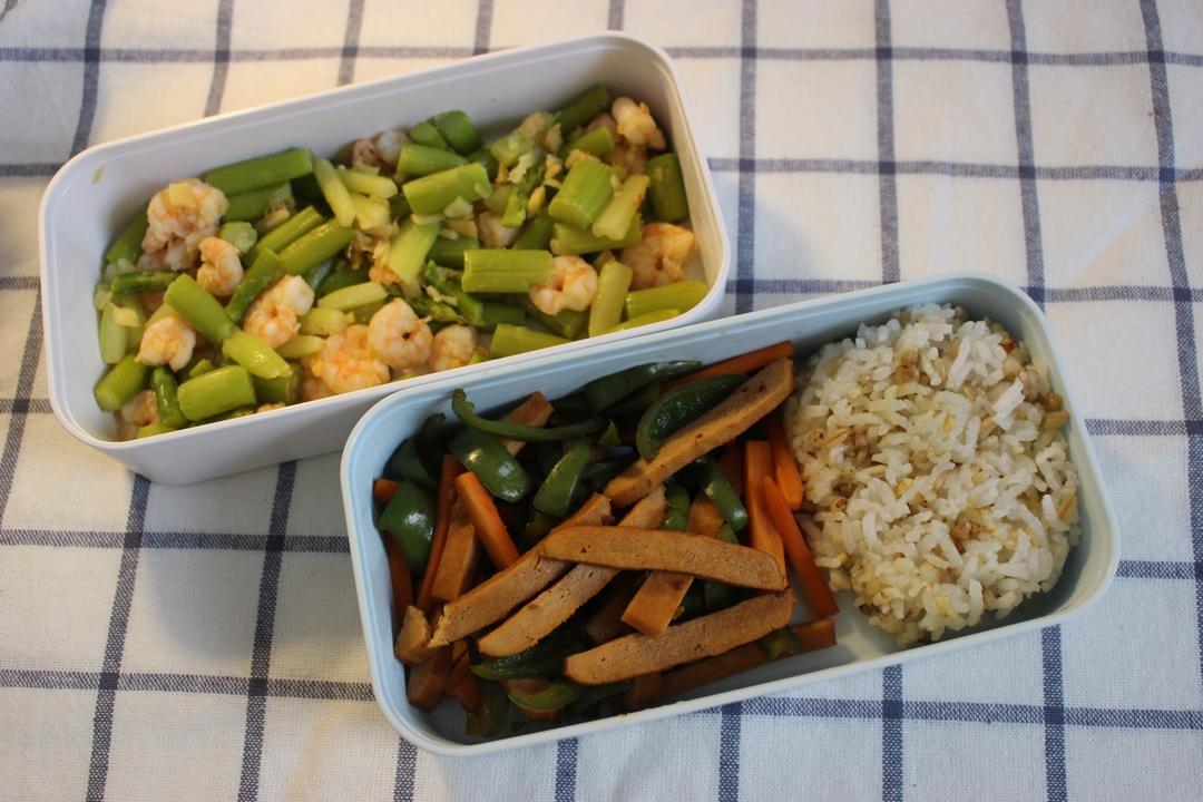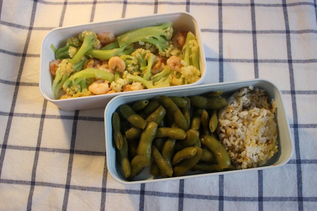 毛豆+花菜虾仁+杂粮饭