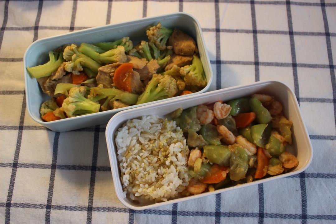 丝瓜虾仁+花菜鸡肉+杂粮饭