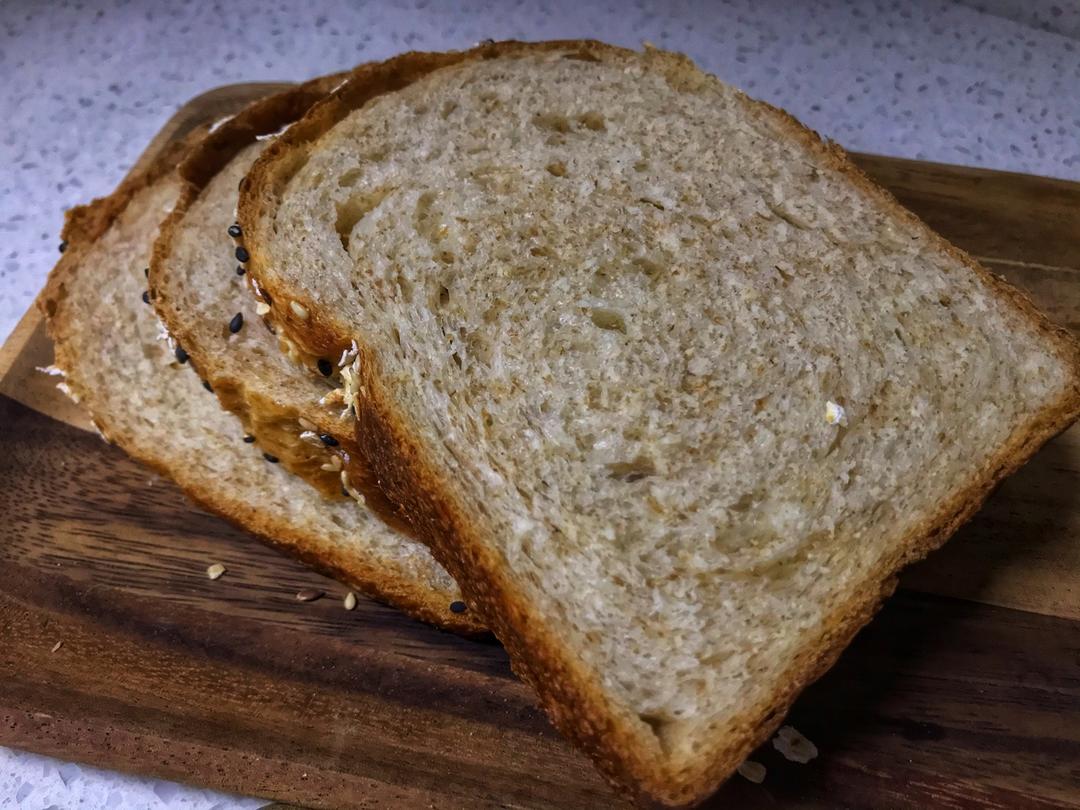 自制的黑芝麻核桃全麦包 好恰!😉