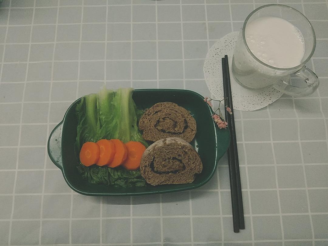又做了喜欢的全麦面包,加了提子干和核桃仁,是我喜欢的搭配,去去油减...