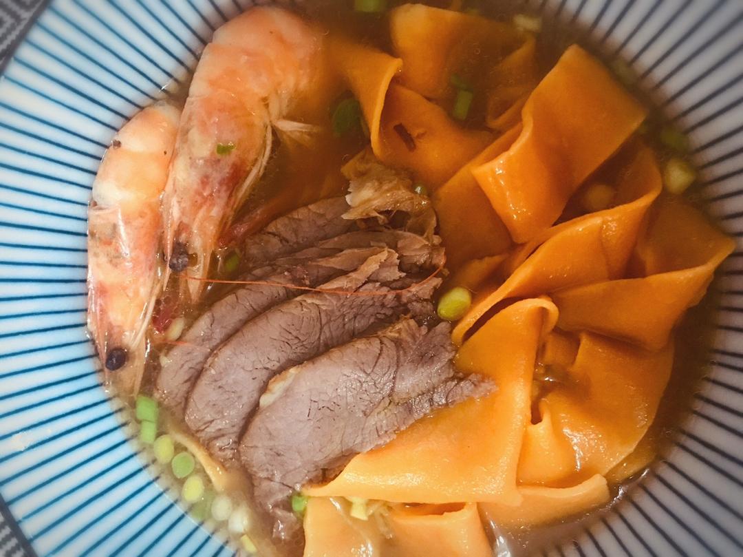 胡萝卜汁和面,混了酱牛肉的汤底,美味!😋