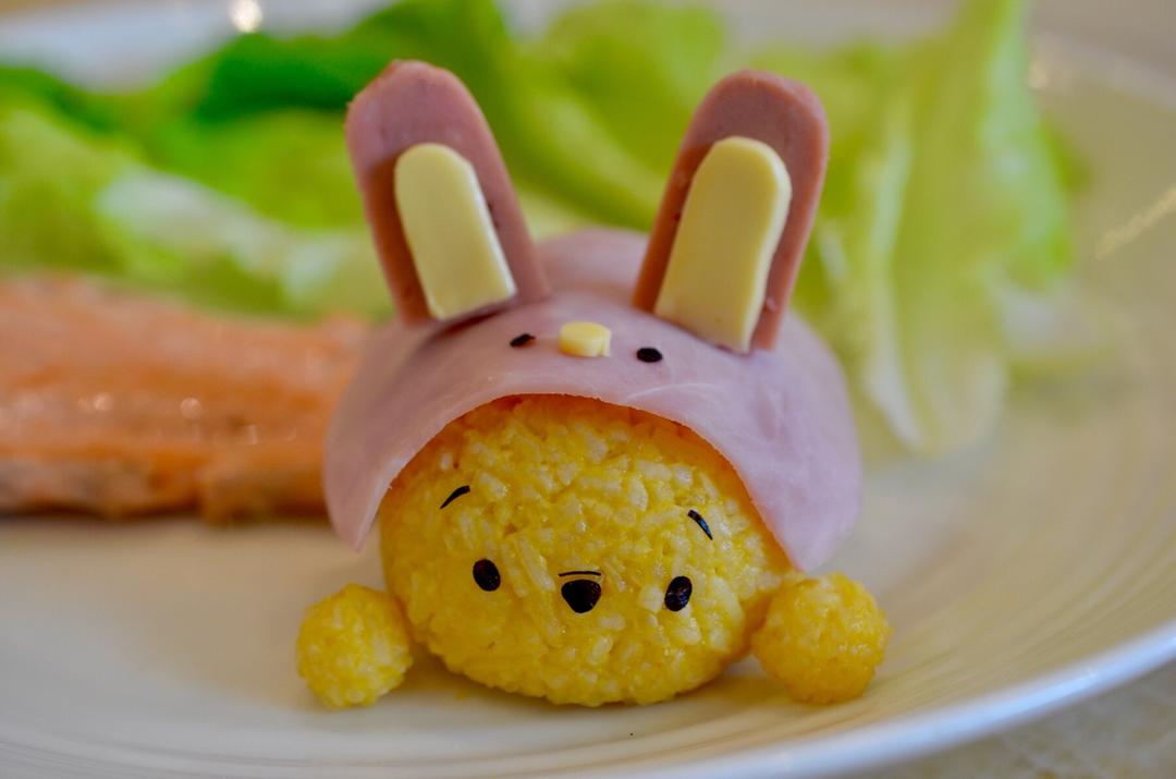卡通饭团-戴着小兔帽子的维尼熊。