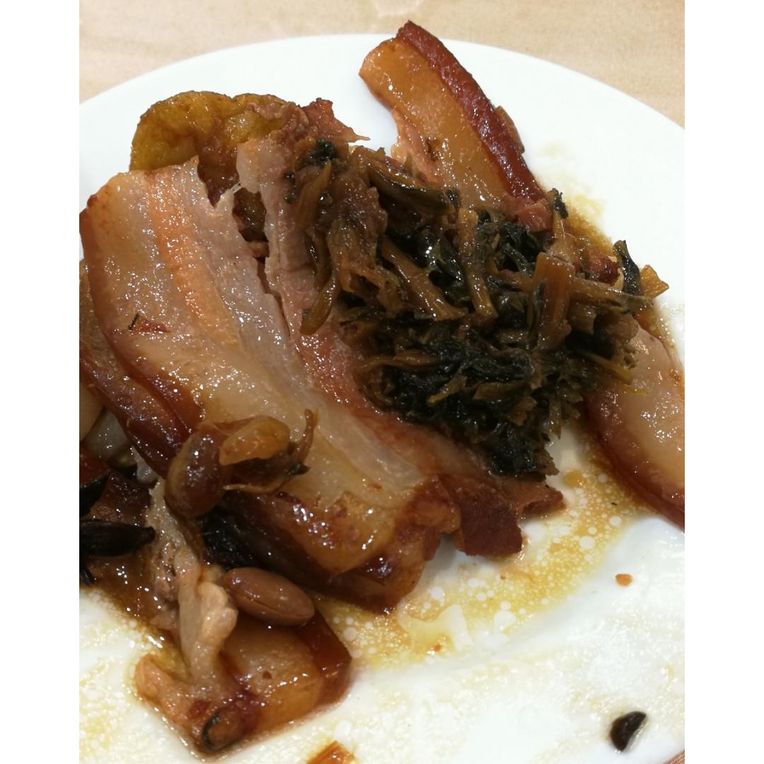 梅干菜黄豆扣肉。来感受一下这优秀的肥肉部分多么的晶莹透亮❤❤
