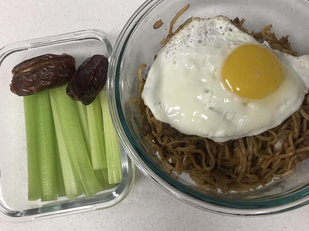 剩了点锅贴芯子炒个面,配荷包蛋