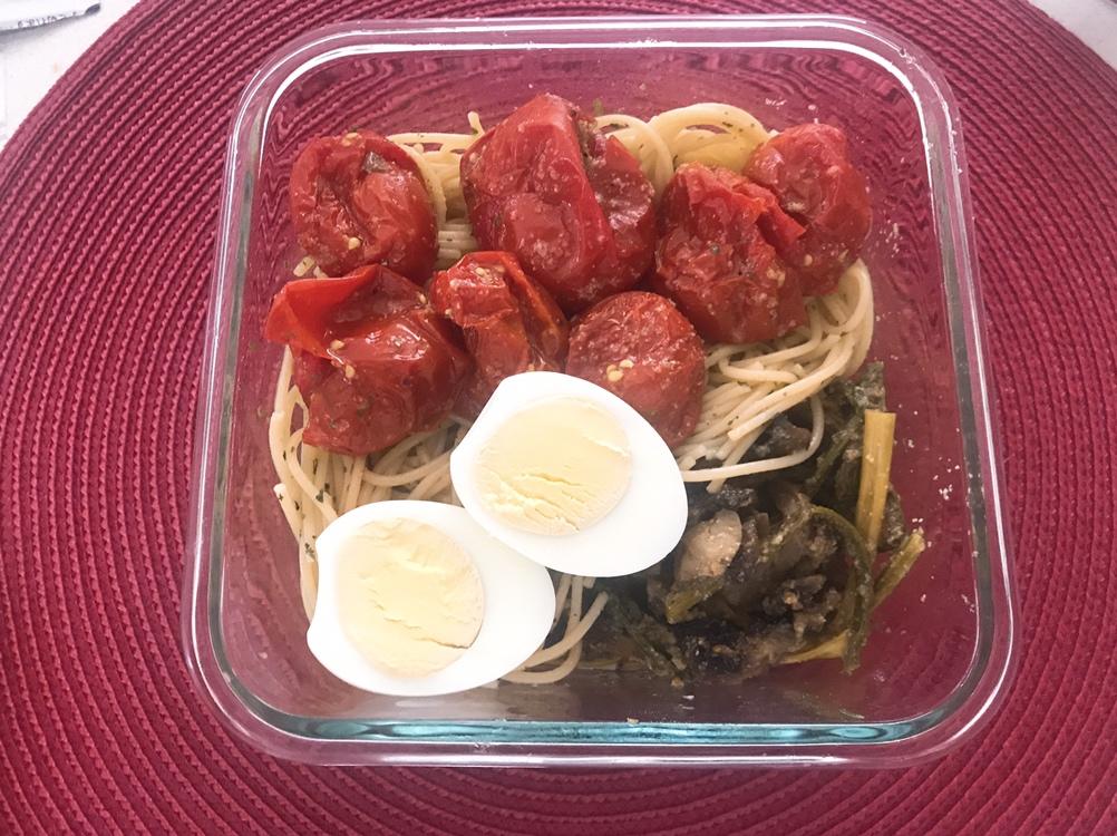 梅子意面配烤番茄芦笋蘑菇