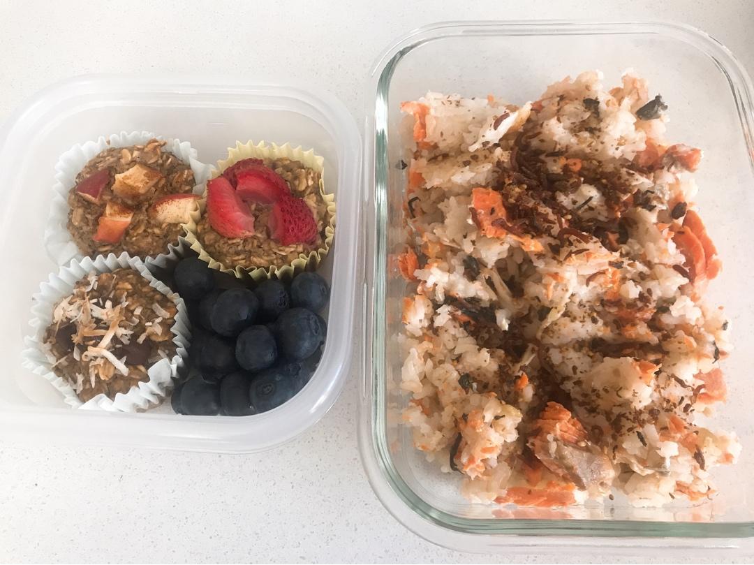 晚饭剩下的三文鱼海鲜菇焖饭撒点小鱼干