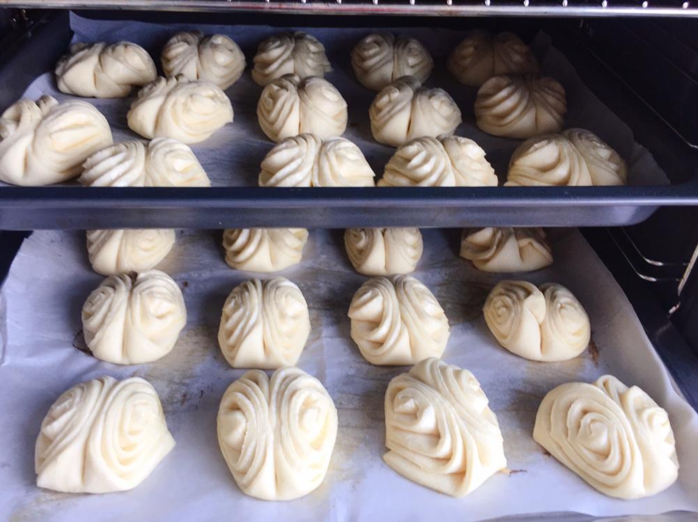 午餐做了生煎花卷,配白粥和小菜吃☺️