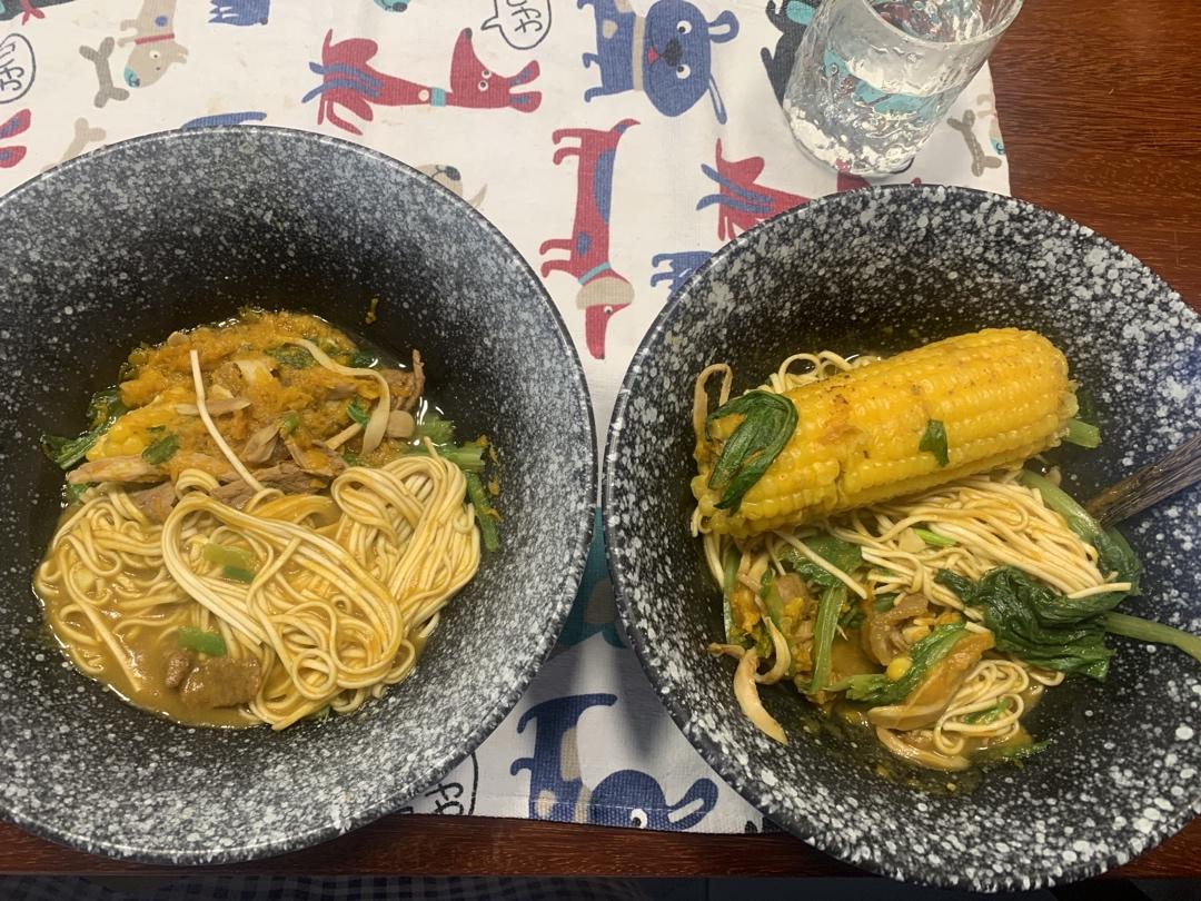 加了刨的卷心菜丝,感觉还是很“日式”的。还放了杏鲍菇,总之味道很鲜美,很好吃啦。