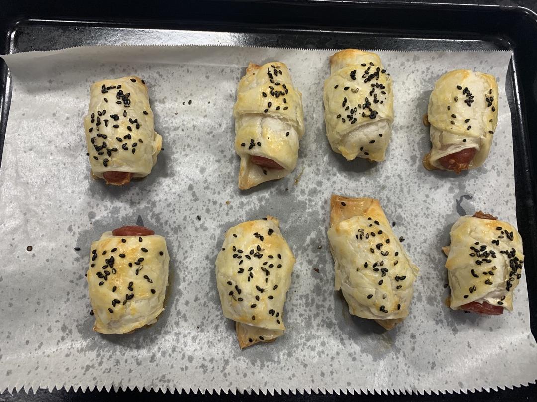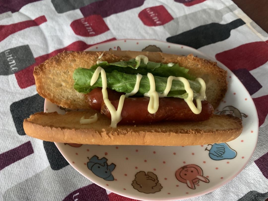 🐿️老公说想吃热狗🌭️,做了个低配版。不过香肠是用烧烤炉做的,和烤箱做的很不一样,表皮很脆。#早餐•2020年2月16日...