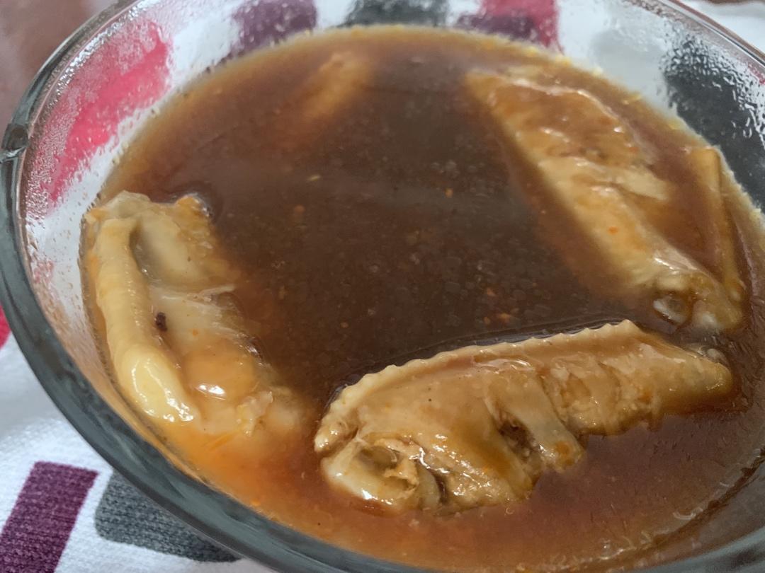 中午用猪脚饭的酱汁做了鸡翅。