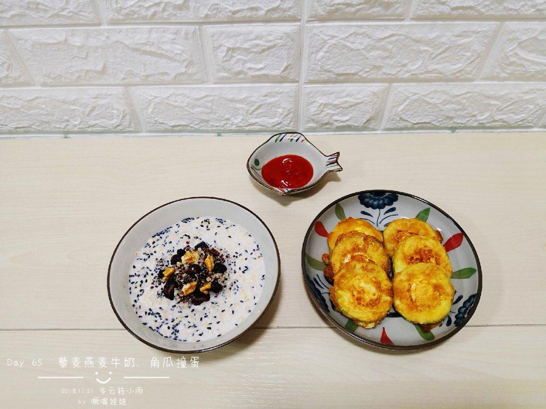 Day 65 今天降温了,做个热的燕麦牛奶,角瓜去瓤打入一个鹌鹑蛋,这顿早餐营养足够...