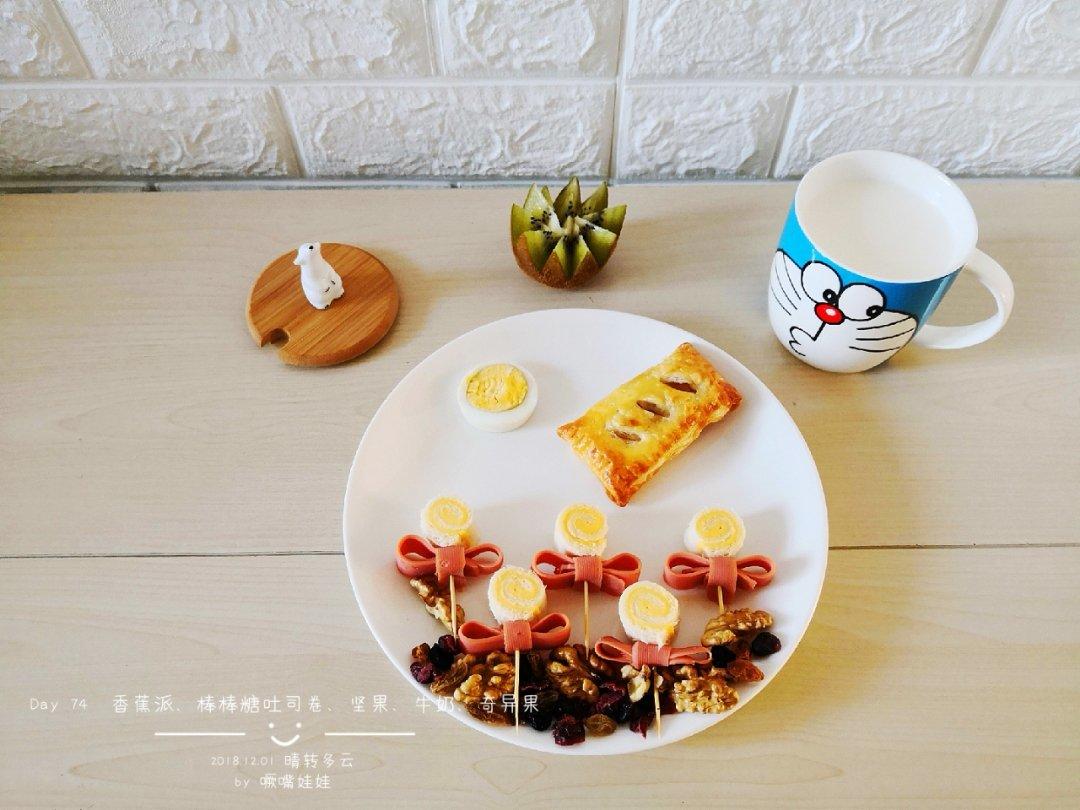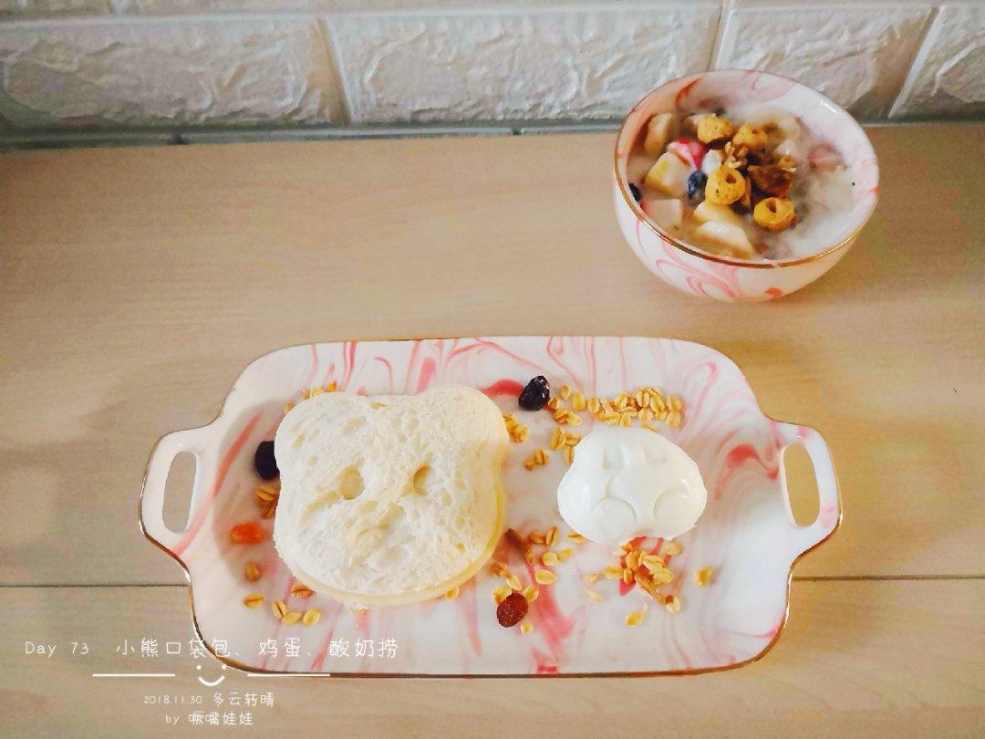 Day 73 口袋包里夹的香蕉酸奶馅,鸡蛋挤成了小汽车形,搭配一碗酸奶捞,今天的早餐...