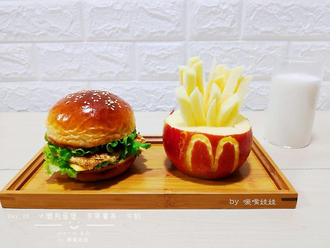 Day 69 睿哥心心念念的火腿煎蛋堡搭配牛奶和苹果薯条~