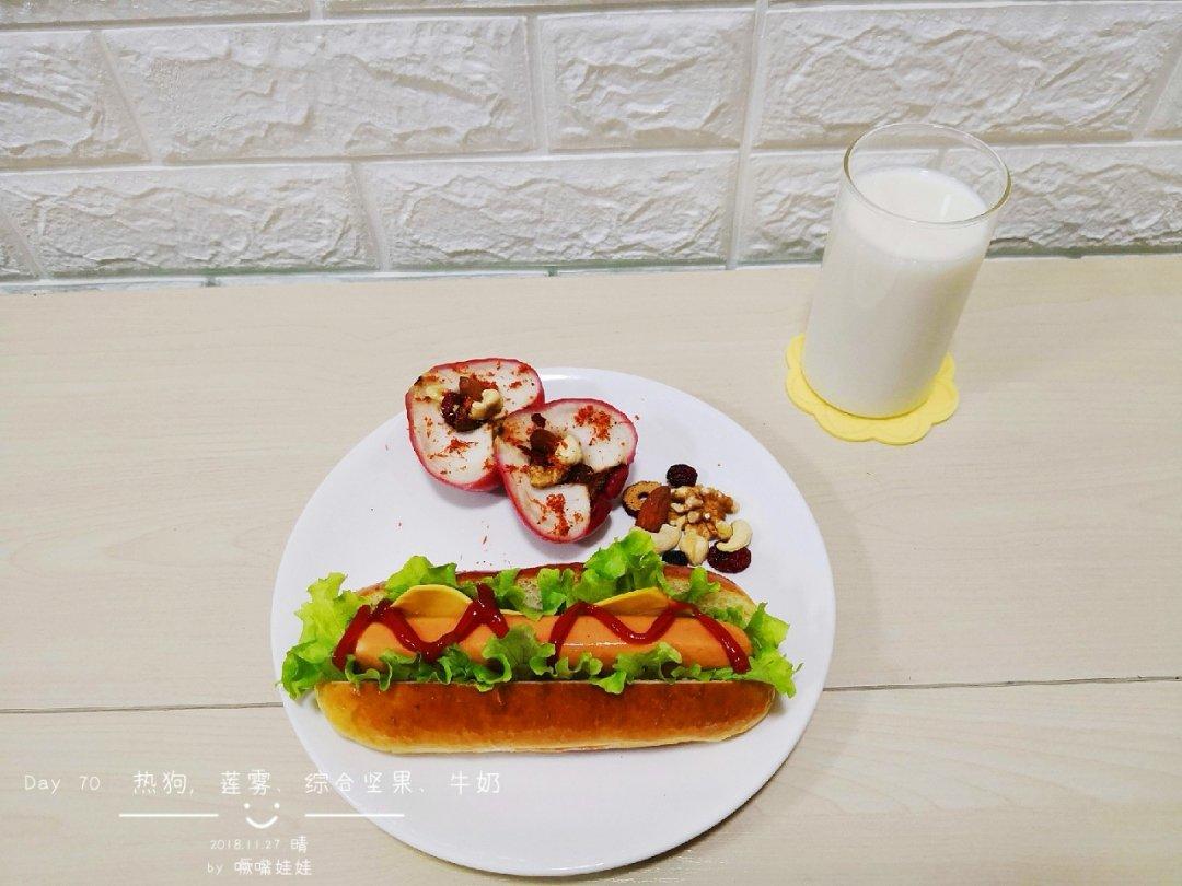 Day 70 一块面团烤了汉堡胚又烤了热狗胚,完美的解决了两天的早餐,为自己的机智点...