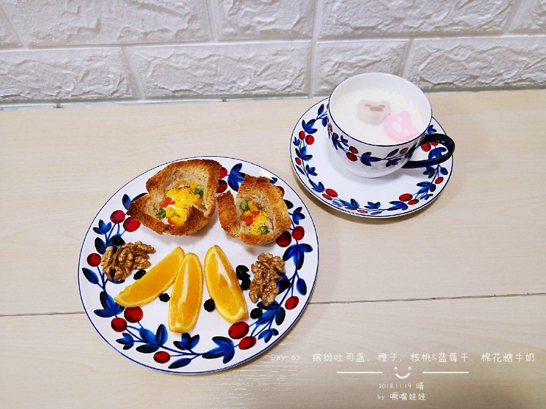 Day 63 缤纷吐司盏的脆边特别好吃,两块棉花糖让牛奶瞬间变得可爱。新的一周,努力...