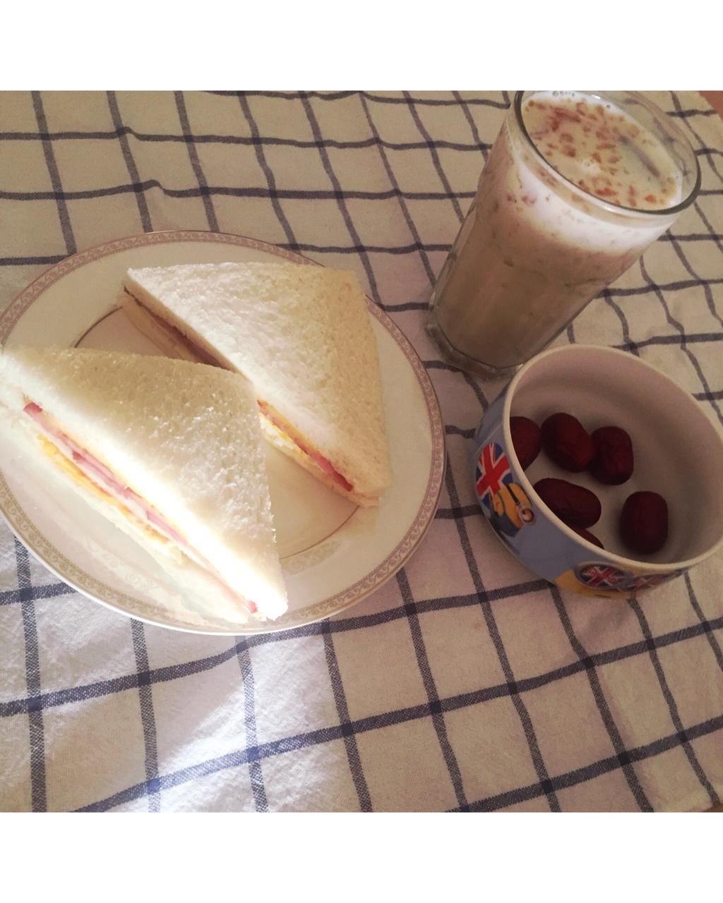 培根鸡蛋三明治➕红枣桃胶炖牛奶